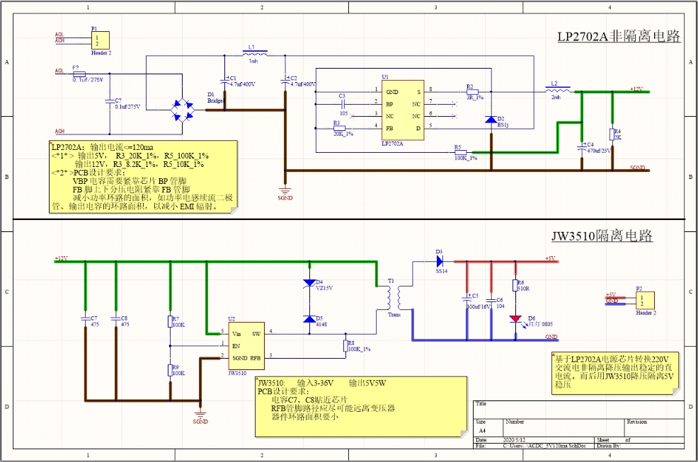 LP2702A芯片以其高效率、高精度和多重保护功能,在开关电源领域中占有一席之地。结合JW3510微功率隔离反激转换器,可以构建一个隔离式、低成本的开关电源电路方案,适用于多种电子设备。这种方案不仅提高了电源的稳定性和安全性,而且降低了成本和体积,满足了现代电子设备对电源的多样化需求。