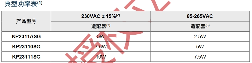 KP23111SG:作为系列中功率最高的型号,它能够提供10W的输出功率,在230VAC ± 15%条件下,提供7.5W的功率。这款芯片适用于高功率需求的场景,如大型充电器或电源适配器。