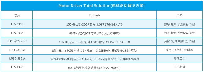 LP32M32xx系列芯片是一款32位48MHz的MO内核微控制器,拥有32KFlash和8KRAM,内置32位DIV和集成6N驱动。这款芯片专为电动工具设计,其高性能内核和丰富的内存资源使其在电动工具领域表现出色。