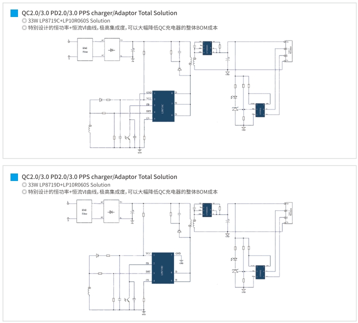 33W QC快速充电方案:LP8719C/D+LP10R060S