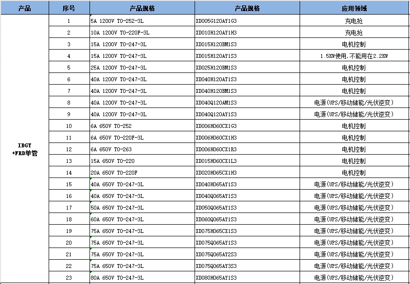 在现代电力电子领域,绝缘栅双极晶体管(IGBT)作为一种高效能的电力电子器件,扮演着至关重要的角色。IGBT结合了MOSFET的高输入阻抗和双极型晶体管(BJT)的低导通压降优点,使其在高电压、大电流的应用中表现出色。随着国产IGBT技术的不断进步,越来越多的国产IGBT产品开始在市场上崭露头角,本文将对国产IGBT的技术特点、型号规格以及应用领域进行详细概览。