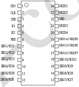 数据传输:通过DIO、STB和CLK三条线实现与外部控制器的数据传输。DIO线上的数据在STB线的上升沿被锁存,CLK线提供时钟信号控制数据的传输节奏。