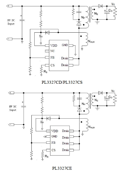 尽管两款芯片都适用于小于18W的AC/DC反激式开关电源,但它们的封装差异可能会影响它们在特定应用中的适用性。例如,PL3327CE的SOP8封装可能更适合于对空间要求较高的便携式设备,如手机充电器和数码相机充电器。而PL3327CD的DIP7封装可能更适合于对成本敏感且空间要求不那么严格的应用,如一些小型电源适配器。